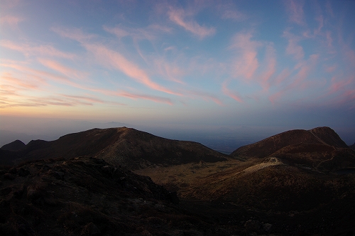 週末、中岳へ朝駆けしてきました. 久住避難小屋で、先行されていたボッチさん達に合流し、小屋から星空を見上げながら、この様子だと単調な日の出になりそうだと予想. この後、木下さん も小屋で合流し、結局、天狗ヶ城には、木下さん、ボッチさんらの4名が、中岳には山下さんと私の2名がスタンバイしてご来光を待つことに