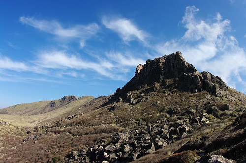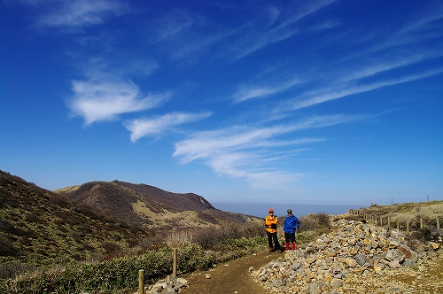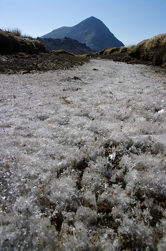 ![]() 稲星山から久住山にかけて踊るような雲が少し色付いてくれましたが、日の出はやはり単調なものでした. 山下さんが中岳を下られた後、ひとりでのんびりしていると、木下さんが天狗ヶ城から中岳へ移動して来られ、青空の下でしばし撮影後、一緒に下山することに... 途中、つり尾根でフェアビューさん と遭遇 フェアビューさんは南登山口から久住山へ登られたとのこと. しばし歓談後、御池のほとりを経て久住非難小屋まで下り、小屋で軽い食事タイム の後、空にはなかなか面白い雲が発生していたため、木下さんと星生崎下でさっそく撮影開始 次から次へと流れてくる雲の表情を楽しみながら、しばらく撮影した後、未だ強烈な泥濘になる前の霜柱が立つ登山道を足早に下山開始. 途中、星生山との分岐を過ぎた辺りで、永松さん に遭遇 くじゅうの大御所である2人と、山の中でこうやって話しをするのはいつ以来だろうか... 面白可笑しく爆笑トークまで出るなど楽しいひと時でしたが、上り組の永松さんを見送った後、下り組の私たちも牧の戸峠方面へ向けて出発. 軽快に下り、峠まであと30分~40分といったところで、何と私にアクシデント発生 ポーチに入れていた携帯電話が無いっ![]() ![]() 「たぶん星生崎下だな 」と何故か確信した私は、木下さんにこのことを告げて、今まで下ってきた道を急ぎ引き返すことに 星生崎下にもしも無かったら...なんてことは考えず足早に戻る登山道は、徐々に泥濘始めていました. 星生崎下で撮影していた場所に行くと、携帯電話が岩と岩の間に落ちているのを発見 無事に保護した旨を木下さんへメール後、再度下山開始... 今度は、強烈な泥濘が登山靴を重たくして足の動きを妨げ、かなり泥だらけとなって登山口に到着. 牧の戸峠のレストハウスで、ゆっくりと過ごした後、男池へ移動. 少しだけ花散策をした後、 で疲れを癒してから帰路へ![]() 踊る雲が色付いた 巨大な火口のようにも見えます... 中岳山頂に立つ木下さん 美しい雲の流れ 登山道には霜柱がビッシリと... 左が永松さん、右が木下さん まるで魚の骨のような雲 ジロボウエンゴサクとアマナ ヒトリシズカ シロバナエンレイソウ
