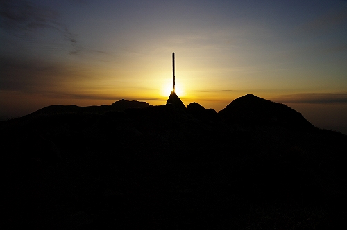 星空を楽しみながら1時間50分程度で天狗ヶ城山頂に到着. 雲の表情や空の透明度から、魅力的な日の出の光景は殆ど期待出来ないと判断していたが、まさにその通りで面白味に欠ける淡々とした夜明けで一日が始まった. なので、少し遊び心が入ってしまった撮影場面も...