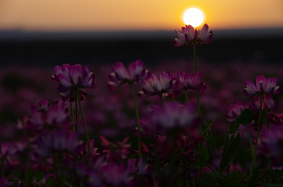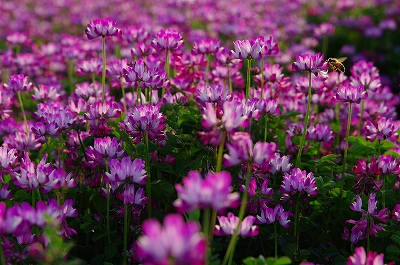 ご覧の通り、あたり一面レンゲソウのピンク色で埋め尽くされていました