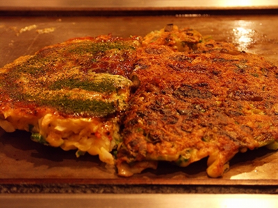 ![]() ![]() 今日から新体操の近畿大会が和歌山で開催されています. 応援は明日の決勝に行く予定にしていたので、予選通過するまでは内心ヒヤヒヤものでしたが、夕方かみさんから決勝進出のメールが届き、ひとまずホッとしたところです ![]() で、居残り組の息子と私ですが、「晩飯どうする?...”やまもと”にしよっか」で決定! ”やまもと”とは、隣町の十三にある『ねぎ焼』の店で、ここが凄く美味いんですよ 駅前の少しだけ怪しい雰囲気の漂う場所にあり、いつもは順番待ちで行列が出来ているのですが、殆ど待つことなく座れました(ラッキー ) 久し振りに本店へ来たので(梅田に姉妹店がありますが、本店の方が美味い)、少し欲張って注文. まずは、ねぎ焼のすじコン(牛すじとコンニャクです)、これだけは外すわけにはいかない定番です. で、ねぎ焼ではない普通のお好み焼でブタ玉、それに、とん平(トンペイ:豚肉を焼いて卵で包んだもの)と焼きそば...(おぃおぃ、ちと多くねぇか との心の声もありましたが... ) 当然これにビール なので、食べ終わった時点で、二人ともお腹いっぱい状態 しかし、本店はやっぱり美味かった![]() 写真は、右側半分がねぎ焼で左側半分がお好み焼です. 本日注文の全品(左から、焼そば、とん平、お好み焼、ねぎ焼) 焼そば以外は、何だか違いが分かり辛いですねぇ~ ![]() 店を出るときはやはり行列が出来ていました 隣は、少し怪しい雰囲気の”ルン・ルン”. ちなみに未だ行ってません(笑) ディープな街、十三... 撮影したこの場所はほんの入口なのでかわいいものです. 奥まった場所にそのディープさがあるのでしょうが、ちなみに未だ行ってませんので(爆) PR