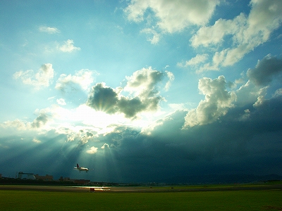 ![]() 青空のキャンバスに描かれた雲の模様が美しい1日でした 昼下がりに挽きたて淹れたての を堪能した後、上空に日傘が現れていたので伊丹へ![]() あまりに空模様が面白かったのと、日暈と幻日が頻繁に現れていたので、厳しい日差しのなか久し振りの長時間滞在となってしまいました 実は偶然にゴールドカラーのANAを見れたのですが、たまたま隣に外国人の方が居て、突然慌ててデジイチのレンズを取り替え始めたんですよ でもって、私の方を見て何だか一言二言伝えてくれたので、ふと上空を見たらゴールドジェットが近付いてきてたわけです どうやら私にそのことを教えてくれたみたいで、どもどもありがとさんでした![]() 夕暮れバージョンは後ほど別に掲載のこととします ![]() ![]()