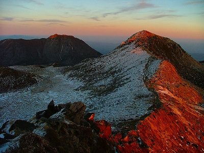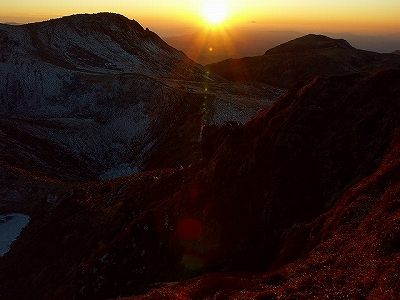 1/4 ![]() ![]() ![]() 本当は1/2からくじゅう入りの予定でしたが、どーしても1/3まで別件があって、1/2に賑わったであろう山仲間の集まり ![]() ![]() ![]() にも結局参加せずの年頭となりました. しかしながら1/4~5は有給休暇を取っていたため、遅ればせながらもようやく今年初山行の日を迎えることが出来ました. 牧の戸峠にはAM4時前に到着. 正月3が日が過ぎ、天気予報も ということで、数台の が駐車しているのみ. 上空を流れる を眺めつつ支度を済ませ、気温-3℃のなかAM5時前に取り付き開始.年末の山行時よりも更に雪は少なくなっており、もはや皆無の状態でした 1/3の23時頃が満月 だったので、月明かりに照らされた登山道を進む. 分厚い は無かったので、このままの状態でいけば星生山と満月 が見れるなぁ~とか思いながら、あっという間に星生崎へ到着. 久住避難小屋方面に明かり をひとつ発見 どなたか先行者が居たようだ. 振り返ると星生崎の先端と満月が重なっていた![]() 小屋で少しお話しをさせて頂いた先行者の方は、昨日から泊まられていたとのこと. 寒さ対策をした後、前回に続き懲りずにまた天狗ヶ城へ向かった. 空の感じからすると、朝焼けは期待出来なかったので、まずは満月を楽しんで、日が昇った後に日暈を期待 すると出てくれましたよ幻日とセットの日暈くんが![]() おまけに上空真上には環天頂アーク、暈の最上部にはタンジェントアーク、幻日を貫くような幻日環まで出現し、さながら氷晶による自然現象のオンパレードみたいな状況でした![]() 山の景色そっちのけで上空ばかり見てたため、くっ首が... 今日も霞は少なかったようで、由布岳や雲仙までくっきりと見えていました. AM10時を過ぎた頃から、厚めの が広がってきたので下山開始. 御池付近では、以前ネットで知り合った方に声をかけて頂きまして、少ししかお話出来ませんでしたが、ありがとうございました. 霜柱が融けてドロドロのグチャグチャ状態となった登山道を慎重に下り、13時頃に牧の戸峠に到着. レストハウスでオーナーとしばし話しをした後、帰路に着きました![]() ![]() こちらもとりあえず写真を数枚ブログにアップしておき、明日か明後日にはサイトへ本格アップの予定です. さて、次回の山行がいつになるか未定ではありますが、厳冬シーズン当初に のくじゅうを体感しておかないと、2007年を乗り切れないので、密かに計画だけは進めておくことにします. では、皆さま今年も当サイトへのお越しをお待ちしています![]() ![]() PR 12/30 ![]() 年末年始の帰省で約2ヶ月ぶりにくじゅうへ ![]() 早朝、 で新門司に上陸し福岡市内へ移動![]() 天気が良かったので、家族と荷物を実家へ送り届けた後、そのままくじゅうへ向けて出発![]() ![]() 数日前に寒波があったので白い九重連山を少し期待していたものの、夜明け狙いだと何とかそれが見れたようだが、午後からの山行では残念ながら斜面の雪は融けてしまってました![]() 牧の戸峠に着くと、朝駆け山行から降りてきてたおやぢ仲間 の『まめ。&ぴろ氏』に遭遇 をご馳走になって、「1/2にまたゆっくり会いましょう 」と言って別れた(これが結局会えずじまいになろうとは... ) 登り始めて15分くらい経ったところで、今度は木下さんと尾崎さんに遭遇! しばし情報交換をして先を目指した. 永松さんも来ているということで、会えるのを楽しみしていたが、どこですれ違ったのか何故かしら会えずじまい 後日サイトで知ったが、オアシスさんもこの日は扇ヶ鼻に居たとのことで、年末ならではの揃い踏みだったようである.素晴らしい青空 が広がったこともあって斜面の雪はすっかり融けており、私がくじゅうへ通い始めてから、今年が最も積雪していない年末となってしまいました![]() ![]() まぁそれでも山行は楽しいもので、ツララや霜柱、月や御池の氷を楽しみながら天狗ヶ城山頂へ. 夕暮れは、空気がとても澄み切っていたので今年最後の山行をアーベントと残照で締めくくることが出来ました![]() そう言えば、稲星山頂と池の小屋前にそれぞれテントが1張、久住避難小屋のある広場にもテントが1張あったなぁ~ 私もいつかはテントで1夜を過ごしてみたいなと... とりあえず写真を数枚ブログにアップしておきますが、明日か明後日にはサイトへ本格アップの予定です. でも、その頃にはくじゅうは で真っ白なんだろうなぁ~...羨ましい では![]() ![]() ちあきなおみではありません...(古っ ) この飛行機写真から始まったと言っても過言ではない私の Life. これ、sony DSC-P1で撮ったものですが、コンデジ300万画素の初期型モデルで、当然の如く動きものには適さない なのに、偶然こんなのが撮れたのがきっかけで、はまってしまったというわけです. 住んでいる所が伊丹空港に近く、2003年はかなりのペースで通い続け、2年3ヶ月間の熊本単身生活を終え、今年の7月からまた伊丹空港に通い始めている状況です. 飛行機写真の師匠である『れーずんさん』のような、風景と溶け込むような写真が撮れれば
