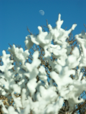 どなたか先行者が居たようだ. 振り返ると星生崎の先端と満月が重なっていた