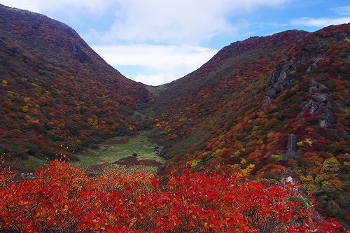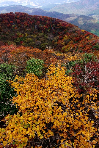 10月16日、朝から夕方までのんびりと三俣山の紅葉狩り