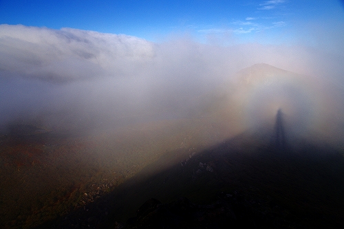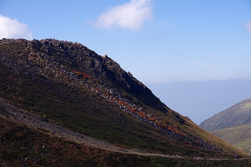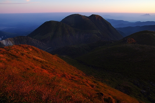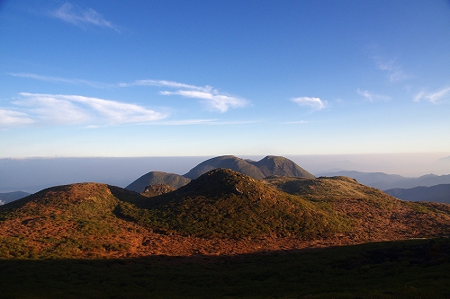 天狗ヶ城山頂にはam5時頃に到着. すぐに他の登山者も増えて、今朝は合計8人くらい. 久住山の灯りは山靴さんだろう. 大船山の中腹にも灯りが見える. am5時30分頃から東の空が美しい色に染まってきた. 地平線は高い層まで霞のようなものが堆積、東の上空はピーカン...しかしながら黎明はことさら美しかった また、西の空には少し雲が広がっており、裏焼け、地球影、なんちゃってダイヤモンド中岳、等々を楽しんだ後、稲星山から中岳方面へ薄いガスが流れ始めたので、天狗ヶ城から中岳へ移動.途中で久住山に目を向けると、久住高原側から久住山を飲み込むようにガスが押し寄せている. ガスの動きが凄くて圧巻である! 「くじゅう版モーニング・グローリー」と勝手に命名した♭ 中岳山頂に到着するとすぐにブロッケンが発生. 中岳の背後にもガスが流れ込んでいるため光りが弱く鮮やかさには欠けるが、それは贅沢というもの. 後続でGOTOさん、山靴さんご夫妻も到着され、山頂にてしばし談笑. その後、池の小屋に場所を移して楽しいひとときを過ごしました. 見渡す限り草紅葉がピークを迎えており、星生山西斜面、肥前ヶ城西斜面は紅葉が始まっていました. 13時過ぎに牧の戸峠へ到着. 登山者の数が半端でなく、牧の戸峠周辺の道路は、とにかく駐車した車で溢れ返っていました ![]() ![]() ![]() ![]() ![]() ![]() ![]() ![]() ![]() ![]() PS. 池塘付近に救助のヘリがホバリングしているのを沓掛山付近から見ましたが、大事に至ってないことを祈るばかりです. 膝の痛みが以前に比べるとかなり改善され、往路は問題ない程度まで回復したものの、下山時に必ず痛みが出てくるので、本調子には未だ未だ程遠い状態です... 15日~16日は大船山 へ行きたいのに、大丈夫かなぁ~... もう10日ほど前のことですが、秋の交通安全県民運動の一環で、9月26日に佐賀市のゆめタウン佐賀で交通安全キャンペーンがあり、佐賀署(青柳善寿署長)から一日交通課長に委嘱された佐賀女子高新体操部の部員5人がさわやかな笑顔で安全運転を呼びかけるというイベントがありました。