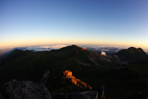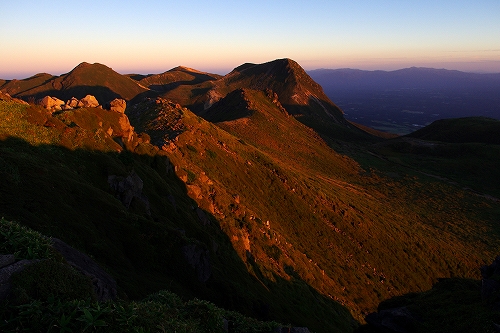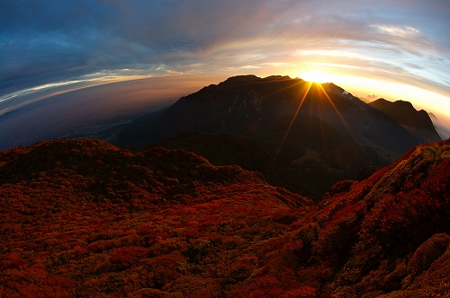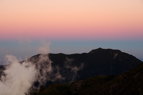 牧の戸峠の駐車場に到着すると、ボッチさんと大島さんにお会いした. 準備万端のマスターには先行してもらい、15分遅れで牧の戸峠を出発. コンクリート道路を登りきったところでマスターと合流. 重装備のマスターと10日前に足を痛めた私のペースがうまくマッチして、一歩一歩ゆっくりと進んだ. 途中、西千里浜で木下さんが追いつかれ、あっという間に見えなくなる. 久住避難小屋に少し立ち寄ってから目的地の久住山頂を目指す. 連休初日とあって朝駆けの方が多く、なかでも天狗ヶ城はやはり大人気で、後で聞いたら10名以上が山頂に居たそうである. 久住山は、東尾根に先行者が1名居ただけで、マスターと私の貸切状態. 人数が少ないからではないが、今朝は相当寒くて、マスターの温度計では摂氏0℃! それなりに寒さを予想し防寒対策はしてきたものの、今シーズン未だ寒さに慣れていない私の身体は悲鳴をあげていた^^; 美しい夜明けではあったが、あまりに単調過ぎて苦笑の朝駆けとなり、マスターと神明水のところまで東尾根を下りてそこから池の小屋へ向かうことに♭ 池の小屋では、木下さん、shino3ご夫妻と、マスターの淹れてくれた美味しいコーヒーを飲みながらしばし談笑. その後ここからは単独行となり、遭難慰霊碑を経由して大勢の人で賑わう久住分かれや避難小屋前をスルーし、いつもの星生崎下でしばし休憩. 予定では早めに下山して実家へ行くつもりだったが、連絡を入れたところ諸般の事情により実家行きが急遽取り止めに! さてどうしたものかとしばし思案した後、これ程の快晴なので夕方まで粘ってみるかという気持ちが強くなり、西千里浜でリンドウを楽しみながら星生山へと向かった. それでも夕方まで相当の時間があるため、山頂下の岩場にある陽だまりでしばらく昼寝をする等して、のんびりゆっくりと、目の前に広がる景色と気持ちのよい風や空気感を贅沢に堪能. 西千里浜を行きかう人の気配も無くなり始め、いよいよ夕暮れを迎える時間帯となったので、山頂へ移動し刻一刻と変化する山・岩・空をひとりで堪能させてもらった. 18時過ぎにアーベントロートのピークを迎え、地球影とピンク色に色付く東の空、いつまでも残照で赤く色付く西の空を楽しみながら、18時40分過ぎに下山開始. 今年の冬は、星生山の魅力を探ってみたいと考えていたところだったので、今回はちょうど良い機会となった. 冬を迎えるその前に、あと数週間もすればいよいよ紅葉の時期となるため、何としても足の痛みを完治させておく必要がある. それまでの間しばらくは山行を中止しようと考えている...が、はたして我慢出来るのか...その答えはくじゅうにて ![]() ![]() PR 9/14~15にかけて、第66回国民体育大会「おいでませ!山口国体」が開催され、新体操少年女子の競技に、娘が佐賀女子高のメンバーで構成するチームの一員として佐賀県代表で出場し、総合45・5875点で2位でした.