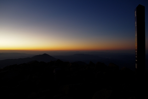 9月23日am2時頃に大曲付近を通過中、見覚えのある車が路肩に停まっているのが視界に入ってきた. 減速して目を凝らして見ると、坊がつるでテン泊の重装備(約40㎏)をしたマスターであった. 声をかけるのを一瞬躊躇したが(笑)、マスターのパワーに吸い込まれるように声をかけてしまった^^ 今朝は久住山に登るとのこと. てなわけで、マスターを牧の戸峠までお送りし同行する羽目に...(爆)
