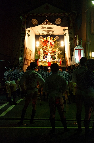 7月11日の早朝5時から6時の間にかけて舁き出される朝山笠.
