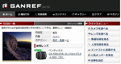 ![]() http://ganref.jp/photo_contests/winners/382 くじゅうで撮影した3枚を組写真として応募していたものです. 選者からのタイトルに対するコメントが... とにかく、外人さんと☆彡とブロッケンに感謝です PS. 2~3枚目はフィッシュアイを使用していますが、レンズ欄に反映されていないようです... PR