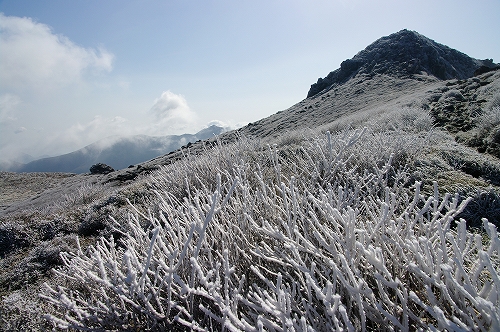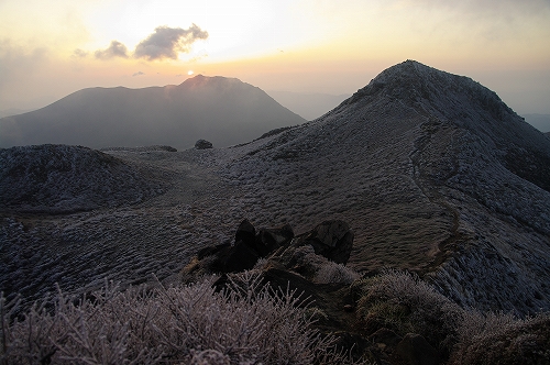 ![]() ![]() 駐車場に停まっている車も少なく、この状況ではさすがに朝駆けする人は居ないようです さてどうしたものかと少し考えていると、ガスが少し薄くなり風の音もゴォーゴォーからゴォーくらいに変わった気がしたので、3時頃に取り付きました. 4時30分頃に誰も居ない避難小屋に到着. 状況は、辺りはガスにより真っ白で久住山の姿も見えず、風はゴォーどころではなく、グゴォーグゴォーの台風状態に![]() ![]() ![]() しばらく小屋の中で待機していると、ようやくガスの中から霧氷を纏った白き久住山が姿を現してくれたので、とりあえず天狗ヶ城に向けて小屋を出発. 振り返ると、西の空に沈もうとしているオレンジ色の満月 がガスの切れ目から見えましたが、またすぐにガスの中へ... 御池から天狗ヶ城山頂までの間は、3月21日の烈風により撃沈した際と同様に猛烈な風で、気を抜けば身体ごと風に持っていかれそうな恐怖感を覚えつつも山頂へ![]() ![]() ![]() ![]() 山頂に到着した時がちょうど日の出の時間と重なったようで、大船山頂のすぐ左から が... この様子だと、GW期間中に天狗ヶ城山頂からダイヤモンド大船山が見れるかもですね? 4月末に霧氷で覆われた山々を見れたのはラッキーでしたが、この暴風状態では山頂に長居は出来ず、でもブロッケンが見れるかもという期待もあって、性懲りも無く中岳山頂へ移動. 案の定、中岳山頂では暴風の餌食となり、何度も転んでしまいましたが、とりあえずブロッケンはかろうじて写っていました そうこうするうちに、ようやく風の勢いが衰え始め、ガスも晴れてきたので、4月末に見る霧氷の光景を楽しみながら下山開始. 前回と同様、牧の戸峠のレストハウスで、ゆっくりと過ごした後 、男池へ移動. 少しだけ花散策をした後、きづな温泉 で疲れを癒してから帰路へ![]() ![]() ![]() もうじきダイヤモンド大船山 かな?巨大なガスのカーテンに映し出されたブロッケン ガスの切れ間から姿を見せてくれた大船山 出来たてホヤホヤ、汚れ無き純白の霧氷 ![]() 4月末に見る霧氷の光景-定番①- 4月末に見る霧氷の光景-定番②- 少しずつ緑が目立ち始めてきましたね 4月末に見る霧氷の光景-定番③- ムーミンに登場していたニョロニョロ ![]() 雨氷を逆光にかざすと芸術品のようでした しっ飛沫がぁ~... ![]() ![]() 下山途中、星生崎下にも未だ霧氷が残っていました 咲き始めた山芍薬/男池