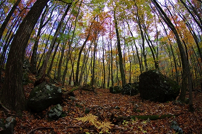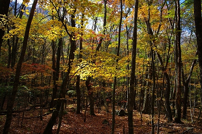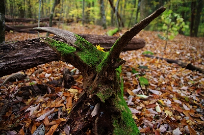 まぁ、陽が射さなくても森の中の紅葉は十分に目を楽しませてくれ、また、その他のオブジェ達がこれまた渋く演出してくれるので、ノープロブレムなのですが