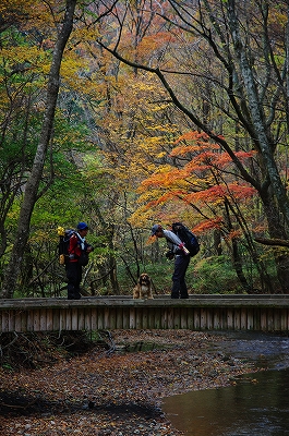 マークだったので、先週に引き続き男池へ紅葉散策へ![]() 10月初旬の朝駆け以降、いろんな制約で山へ登ることが出来ず、今回もまた午後からの山麓周辺です 途中、九酔峡の紅葉を楽しみながら飯田高原に到着すると マークの割にはやたら雲が多い まぁ、そのうち雲は無くなるだろうと思い男池へ![]() 駐車場ではFancy Pageのkyokoさんに何年振りか忘れるくらい久しぶりのご対面 その後、ギャラリー茶屋 おいちゃん家のご夫婦に挨拶をしてさっそく森の中へ 暫くは陽が射していたものの、そのうちに が に遮られてしまい...少々テンションダウン まぁ、陽が射さなくても森の中の紅葉は十分に目を楽しませてくれ、また、その他のオブジェ達がこれまた渋く演出してくれるので、ノープロブレムなのですが 暫くして、ふと、背後に何かを感じたので目を凝らして見てみると、まめ。&ぴろ&HANAのご一行様と、せせらぎの春雪さんじゃありませんか お久しぶり~ということで、かくし水まで一緒にテクテクと散歩してきました. HANAは女優さんなので、アシスタントの、まめ。&ぴろがあんな事、こんな事をしながら楽しいひとときが過ぎていきます 着飾ったHANAの姿はこちらをどうぞ 散歩を終えて、おいちゃん家へ立ち寄り、美味しいコーヒーを頂いた後、カモの炭火焼と塩味スープの素”角(かく)さん”を購入. ”角(かく)さん”は先日購入した塩コショウ”助さん”の姉妹品? とにかく美味しくお勧めなので、皆さん男池に立ち寄った際には、おひとつどうぞ カモの炭火焼、きびだんごも超お勧めですよ![]() まめ。&ぴろのお勧めで、帰路の途中で馬子草(まごそ)温泉”きづな”で立寄湯 ここは、お湯の質・雰囲気・ロケーションともに良く、かなりのお気に入りとなりました さてさて、上 へ登るのは、次回、ぐっと冷え込んだ時になるかなぁ...ではでは![]() 陽が射す美林 森の中のオブジェ 生命のサイクル HANA登場 滅多に見れない?愛くるしいHANA 女優の休憩姿 ![]() 美林 ご一行様 PR