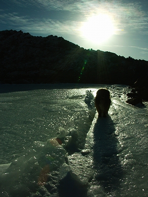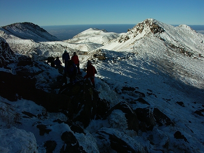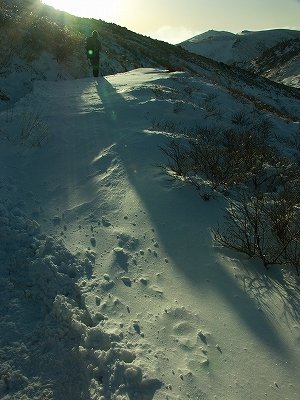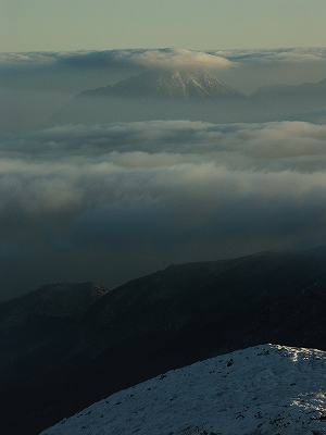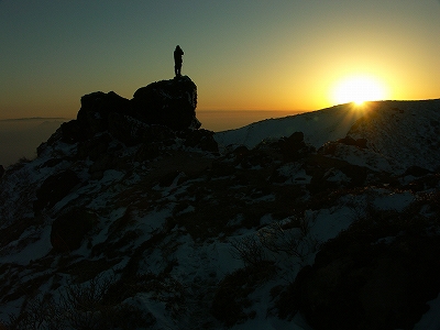沓掛山で一瞬晴れてくれただけで、その後は 下りの登山道で、ばったり木下さん&佐藤さんと遭遇し、そのまま一緒に下山して、結局、木下さんとは引き続き牧の戸レストハウスで談笑してました 今朝の朝駆けは天候も良く、途中白い山と一緒にブロッケンも現れてくれたとのことをお聞きし、良い朝駆けだったようで何よりでした. 私も明日こそは朝駆けを楽しもうと、早めに筌の口温泉 でゆっくりしていると、まめ。っち&ぴろっちに遭遇. その後、長者原で車中談笑を経て就寝 写真もあまり無いので、ここに併せて書いた次第です.前置きが長くなりましたが、3日目、am3時頃に目を覚まし、一応、まめ。っち&ぴろっちに「朝駆け行ってくる」と告げて牧の戸峠へ ![]() am4時から登り始めてしばらく進むと、どうやら先行者が一人いるような足跡を発見![]() ガスかかる中、西千里浜の途中で前からライトが近付いてくる 少々ビックリしながら、星生山に予定を変更されたのかな?とか思いつつ、すれ違った後、しばらくすると再度後ろからそのライトが近付いてくるではないか![]() まさか幽霊 いやいや、さっきすれ違った際は、確かに足は付いていたよなぁ~とか考えつつ、結局、星生崎下の避難小屋前で会話をした結果、先にここまで辿り着いていたけど、いっこうにガスが晴れないので、あきらめて戻る途中だったとのこと. 私とすれ違って、再度思い直して戻ってきたとのことでした. 結局、この時点で満点の星空となっており、戻ってきて良かったですね~、綺麗ですねぇ~と何だか楽しい気分でした. しばらく避難小屋で時間調整をしてから天狗ヶ城へ. ここで別の後続の方が先行されまして、結果的にはトレースのついていない箇所があったので、私としてはトレース泥棒になってしまい楽をさせて頂きました 避難小屋で少しゆっくりし過ぎたようで、東の空は既に少し明るくなり始めており、少々焦っての山頂到着. ちなみに、体調は全く問題が無く、昨日、一昨日は一体何だったのか?といった感じでした. 今日の朝駆けはモルゲンロートも楽しめ、雪も結構ありで、気持ちの良い山行となりました. その光景はkuju-galleryでご覧下さい. 山行途中で、偶然にもまめ。っち&ぴろっちに犬のHANAちゃんを加えた『まめ。ご一行様』と出会い、夕暮れまで行動を伴にすることになりました. あいにく太陽の力が弱く、ガスの発生もあったりで、これまでの経験を踏まえ、3者と一匹による協議の結果、星生崎下でアーベントを迎えることに決定. 結果はほんのりアーベントロートに終わりましたが、かすかながらもブロッケンにも出逢えたし、雲仙普賢岳がクッキリと浮かび上がる朱色の残照も見れたりで、満足な山行となりました. 次回に向けてしっかりと体力をつけておくよう、まめ。ご一行様と固く約束し、年始の山行を無事に終えました. いやぁ~、やはり”くじゅう”は楽しいわ![]() ![]() 今朝の天狗ヶ城山頂は、私を含めて3名 日が昇ると山行者が増えてきます 由布岳山頂にかかる傘のような雲 祖母・傾山系が美しい 御池方面へ向かう、まめ。ご一行様(2人の間にHANAがいます) HANAの影vol.1 HANAの影vol.2 ぴろっちの影 星生崎方面へ向かう、まめ。ご一行様 まめ。っち? ぴろっち? はて?このショットはどっちだったっけな? 残照に浮かぶ雲仙普賢岳の溶岩ドーム(小さ過ぎて見えない? )PR 前夜、就寝前の天候チェックで、2日は