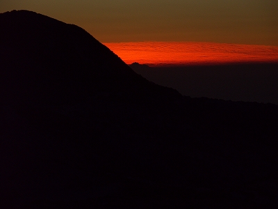避難小屋で少しゆっくりし過ぎたようで、東の空は既に少し明るくなり始めており、少々焦っての山頂到着. ちなみに、体調は全く問題が無く、昨日、一昨日は一体何だったのか?といった感じでした. 今日の朝駆けはモルゲンロートも楽しめ、雪も結構ありで、気持ちの良い山行となりました. その光景は