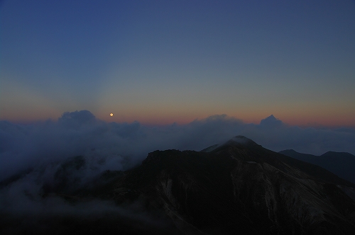 が目の前に登場. 山仲間にデリカD5所有者はいないはずなので、全く気にもしていなかったが、突然私の名前を呼ばれて「あれっ!GOTOさんだったんだ 」と相成りました しかも三愛レストハウスで近くに停まっていたのもGOTOさんだったとは...![]() そうこうするうちに予定の2時になったのでMr.IRIEと取り付いた. GOTOさんも少し後に取り付かれたようだ. 今日は単独ではないので沓掛山までゆっくりゆっくりのペースで進む. 久住避難小屋まで1時間30分程度で到着. この時点で、避難小屋周辺は3回連続の辺り一面ガス真っ白状態であった 何度か外の様子を伺うが、上空を見ても一向にガスが晴れる気配が見当たらない![]() そろそろ山頂に向けて出発する時刻 が近付いた時に、小屋の外に出たGOTOさんが声を上げた 外を見ると、先ほどまでの強烈なガスが綺麗に晴れてしまっているではないか 星生崎方面等、周りを見るとガスは未だ残っているので、完全に晴れた訳ではないことを確認. こりゃガスとのコラボになるなと確信して天狗ヶ城へ向かった 山頂へ向かう途中、遠くの空が頻繁に光っている のが見えた. 雷である. 朝駆けでこの光景に遭遇したのは初めてであった.天狗ヶ城山頂から周りの山頂を確認すると、中岳、久住山、扇ヶ鼻に登山者がいることを確認. 扇ヶ鼻は永松さんだったようだ. 天狗ヶ城山頂には、GOTOさんと我々2名、それに後で分かったのだが、福岡の武内さんが一緒だった. この日は抜群の透明度で夜明け前の黎明がことさら美しく 、また、久住高原から星生崎・星生山にかけて流れてくるガスが良い雰囲気を醸し出している. 久しぶりに見るモルゲンロートも美しい. 多彩に染まる空・雲・ガスと、久しぶりにくじゅうの光景を楽しませてもらった![]() 日が昇った後しばらくして、ブロッケン狙いで中岳へ移動したが、その後は結局ガスが流れてこなくて見ることは出来なかった. Mr.IRIEは稲星山へ. GOTOさんはひと足先に池の小屋へ. 私もしばらく山頂でのひとときを楽しんだ後で池の小屋へ移動. 再びGOTOさん・Mr.IRIEと合流した後は、それぞれに下山開始. 今日の一番の目的は「The 夏山」という光景を撮りたかったので、御池周辺、星生崎周辺でそれらしき光景に出くわすことが出来て満足度アップ ![]() ![]() 下山後、これまた久しぶりに「男池のおいちゃん家」へ立ち寄り、美味しいものを堪能させていただき、翁草さんご夫妻やHEROさんにもお会いすることが出来て、非常に充実した山行となった. 次回もこうあって欲しいと切に願って... ![]()