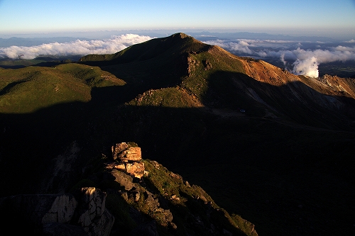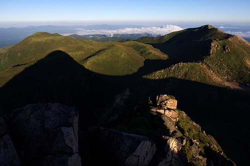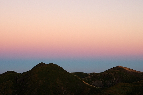 牧の戸峠の駐車場に到着すると、ボッチさんと大島さんにお会いした. 準備万端のマスターには先行してもらい、15分遅れで牧の戸峠を出発. コンクリート道路を登りきったところでマスターと合流. 重装備のマスターと10日前に足を痛めた私のペースがうまくマッチして、一歩一歩ゆっくりと進んだ. 途中、西千里浜で木下さんが追いつかれ、あっという間に見えなくなる. 久住避難小屋に少し立ち寄ってから目的地の久住山頂を目指す. 連休初日とあって朝駆けの方が多く、なかでも天狗ヶ城はやはり大人気で、後で聞いたら10名以上が山頂に居たそうである. 久住山は、東尾根に先行者が1名居ただけで、マスターと私の貸切状態. 人数が少ないからではないが、今朝は相当寒くて、マスターの温度計では摂氏0℃! それなりに寒さを予想し防寒対策はしてきたものの、今シーズン未だ寒さに慣れていない私の身体は悲鳴をあげていた^^; 美しい夜明けではあったが、あまりに単調過ぎて苦笑の朝駆けとなり、マスターと神明水のところまで東尾根を下りてそこから池の小屋へ向かうことに♭ 池の小屋では、木下さん、shino3ご夫妻と、マスターの淹れてくれた美味しいコーヒーを飲みながらしばし談笑. その後ここからは単独行となり、遭難慰霊碑を経由して大勢の人で賑わう久住分かれや避難小屋前をスルーし、いつもの星生崎下でしばし休憩. 予定では早めに下山して実家へ行くつもりだったが、連絡を入れたところ諸般の事情により実家行きが急遽取り止めに! さてどうしたものかとしばし思案した後、これ程の快晴なので夕方まで粘ってみるかという気持ちが強くなり、西千里浜でリンドウを楽しみながら星生山へと向かった. それでも夕方まで相当の時間があるため、山頂下の岩場にある陽だまりでしばらく昼寝をする等して、のんびりゆっくりと、目の前に広がる景色と気持ちのよい風や空気感を贅沢に堪能. 西千里浜を行きかう人の気配も無くなり始め、いよいよ夕暮れを迎える時間帯となったので、山頂へ移動し刻一刻と変化する山・岩・空をひとりで堪能させてもらった. 18時過ぎにアーベントロートのピークを迎え、地球影とピンク色に色付く東の空、いつまでも残照で赤く色付く西の空を楽しみながら、18時40分過ぎに下山開始. 今年の冬は、星生山の魅力を探ってみたいと考えていたところだったので、今回はちょうど良い機会となった. 冬を迎えるその前に、あと数週間もすればいよいよ紅葉の時期となるため、何としても足の痛みを完治させておく必要がある. それまでの間しばらくは山行を中止しようと考えている...が、はたして我慢出来るのか...その答えはくじゅうにて ![]() ![]() PR 9/14~15にかけて、第66回国民体育大会「おいでませ!山口国体」が開催され、新体操少年女子の競技に、娘が佐賀女子高のメンバーで構成するチームの一員として佐賀県代表で出場し、総合45・5875点で2位でした.