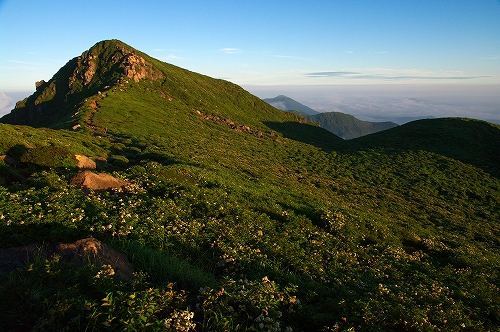 原園さんもガスのため誰かが来るのを待っておられたようで、私に声をかけられた後すぐに先行された.支度を終えて2時30分過ぎに登山口をスタート. ガスの中、先行した原園さんのライトは全く見えず、西千里浜の終わり付近でようやく追いつき、一緒に星生崎付近に差し掛かったところで、突然目の前に人影が ![]() 心臓が止まるかと思うくらい驚きつつも息を呑んでよ~く見ると、その人影はライトを消して立っているとしちゃんでした...![]() その後、久住避難小屋に少しだけ立ち寄ってから天狗ヶ城へ向かう. 天狗ヶ城に到着すると東の空には高い位置まで壁のように雲が広がっており、いきなり意気消沈モード になりかけたものの、周辺のガスが何か面白い光景を見せてくれそうな気配も残っており、流れに身を任すことに...結果は、派手な朝焼け等は無かったものの渋目の光景に十分満足. 特に日の出直後に大船山上空で光芒が射し込む光景は、上空の雲の動きと相まって非常に私好みの光景となりました ![]() 下山途中では花博士のHEROさんに遭遇. 花素人の私も、少しだけですが夏の花を自分なりに楽しみながらのんびりと牧の戸峠へ. 8月の山行目標⇒あと3回...かな? アラビアのロレンスさん ![]()