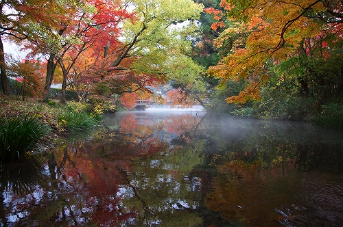 ![]() ![]() 皆さんとの約束に遅れること約2時間という大失態で本日のイベントに参加 ![]() 金鱗湖に辿り着くと、皆さんそれぞれに思い思いのポイントで、既に撮影を開始されていた. ひとり、もう一人とお会いするうちに、天井桟敷近くの橋に集結. その後、本日のメインイベント?、湖の畔へと移動してモーニングコーヒー&ブレックファーストタイムとなった ![]() ![]() 私の担当はMORE700隊長命令により、挽きたて煎れたてのコーヒー係である ![]() 行きつけの「珈琲豆屋」で仕入れたボンジャルディンという香りが良くてコクがあるお気に入りの豆をゴリゴリと挽いてご披露. 割りと濃いめに煎れるので、皆さん大丈夫だっただろうか? 皆さんからは美味いものを沢山提供して頂き、朝もやが漂う湯布院の贅沢な空間で、非常に楽しいひとときでした ![]() 片付け後、オアシスさんお勧めのスポットへ移動 ![]() ![]() 仏山寺という大きな銀杏の木と紅葉が見事な場所で、しばしの間、皆さん思い思いに撮影. 次に梅園へ移動 ![]() ![]() ここは、由布岳が見える小さな森で、紅葉がちょうど見頃を迎えており、それはそれは素晴らしい紅葉スポットでした ![]() この場所で一旦解散となったものの、 が次第に そうな気配だったので、かなりの時間この場所に滞在することに…結果、光が差し込んでよい感じとなり、残ったメンバーはしてやったりの笑顔でした ![]() 金鱗湖の方へ再度移動し、仏山寺を再訪問. だんだんと斜光気味になり、先ほど訪れた時とはまた違った雰囲気を醸し出しており、いい感じ ![]() ピョンと動く気配でアマガエルを発見 ![]() 落葉とのツーショットを収めて、金鱗湖へ移動 ![]() ![]() モンユフというスイーツを求めて人気のカフェ天井桟敷へ. ゆったりとしたBGMが流れる雰囲気抜群の店内では、この時期限定、窓越しの紅葉に見惚れ、モンユフの美味しさに酔いしれ、至福の時間(とき)を過ごせました ![]() 遅刻で焦った1日の始まりでしたが、大満足の湯布院撮影会となりました. 次回は是非とも一泊温泉宴会付きが実現することを祈って…多謝 皆さん、楽しいひとときをありがとうございました ![]() ![]()