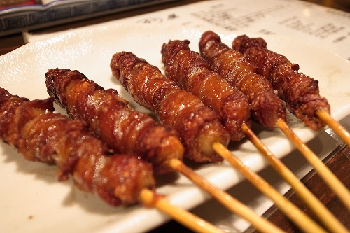 名物の「とり皮」は勿論のこと、わさび醤油で頂く「ささみのしぎ焼き」や絶品の「スジ」等々、〆には「鶏スープ」のサービスあり